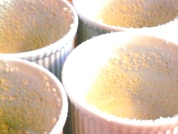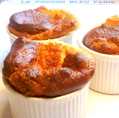 Otherwise, make a “crown” by running the spatula halfway over, a few inches down in a circle. Circle it several times. Bake for 10 minutes. Reduce heat to 400 degrees and bake about 25 minutes longer. Don’t mess with it. If you want to impress the souffle eaters make sure they are ready to eat as you bring it to the table -as it falls fast!