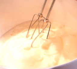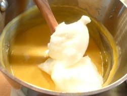 Beat the egg yolk with a whisk until light . Gradually pour into cheese mixture and stir until well mixed.