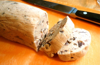 The dough will be very creamy so put it in the fridge for a half hour or so because you are going to roll it into a log and refrigerate some more.