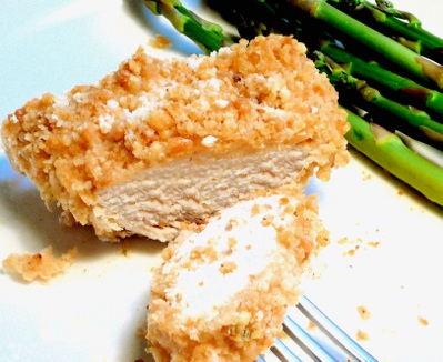 Pre-heat oven to 350 degrees. Roll the sour cream coated chicken in the bread crumbs and place in a large baking dish where the bottom has been lightly buttered. A lot of the sour cream mix will be left in the bowl- discard it. Don’t crowd the chicken- as this will tend to steam it rather than crisp it.